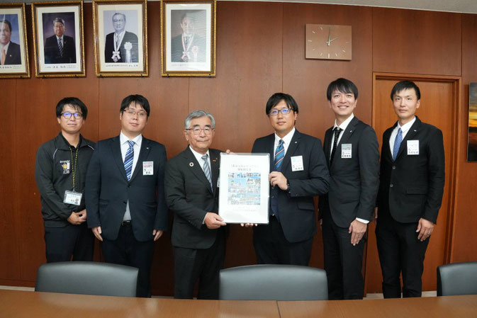 10月28日において、大洲市役所にて二宮隆久大洲市長へ「長浜うみまちフェス」の報告書を手渡しさせていただきました。また、大洲青年会議所として、長浜うみまちフェスを通していただいたご意見をもとに新しいまちづくりに向けた提言書も提示させていただきました。